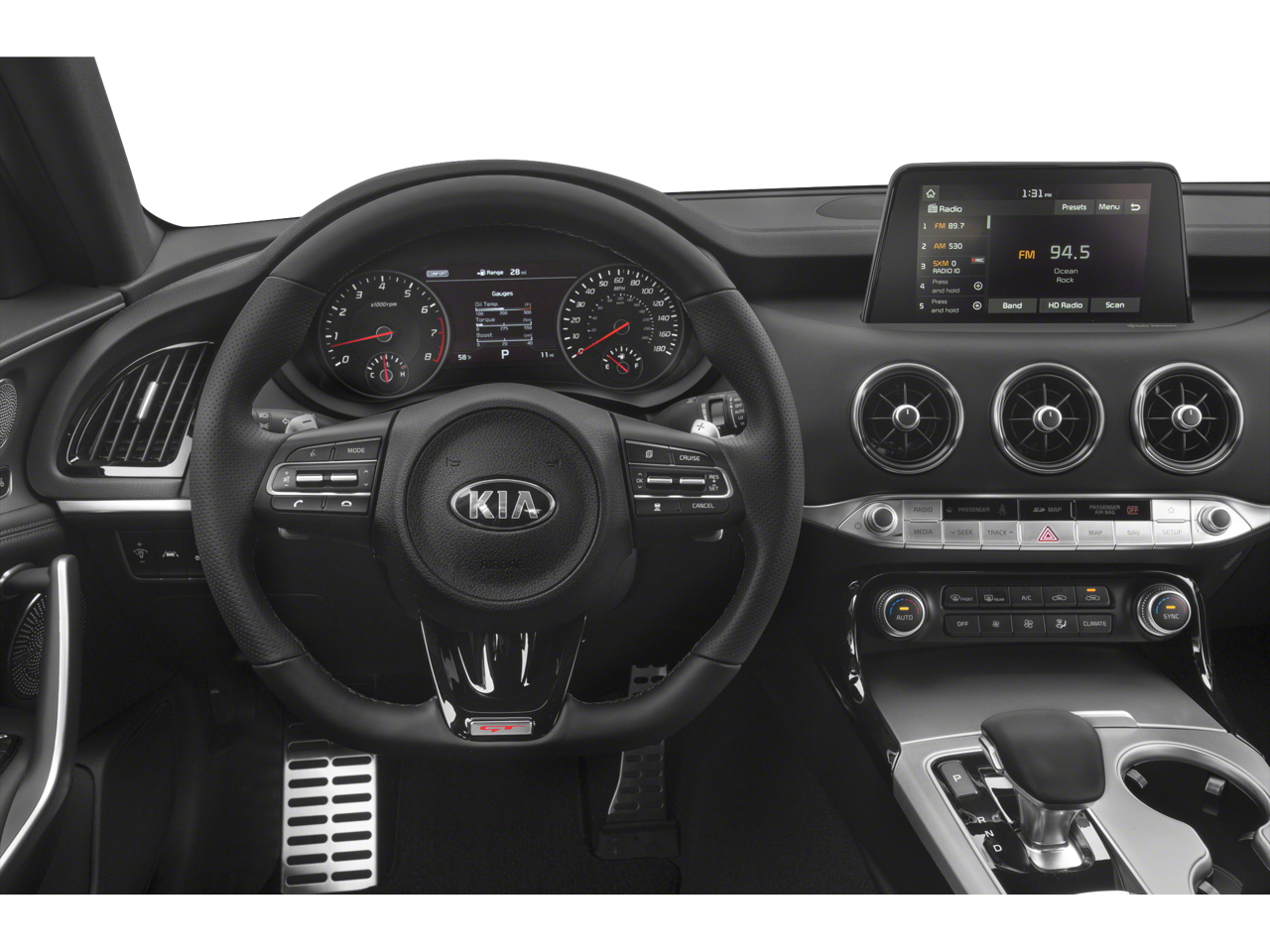 • Radio: AM/FM/MP3/HD/SiriusXM harman/kardon Audio -inc: 720 Watts, navigation system, 8" color touch-screen display, 15 speaker premium surround sound including dual underseat subwoofers, QuantumLogic, ClariFi digital music restoration, UVO eServices infotainment system, support for Android Auto and Apple CarPlay, USB input, Bluetooth® wireless connectivity w/voice recognition, wireless phone charger and steering wheel mounted audio controls