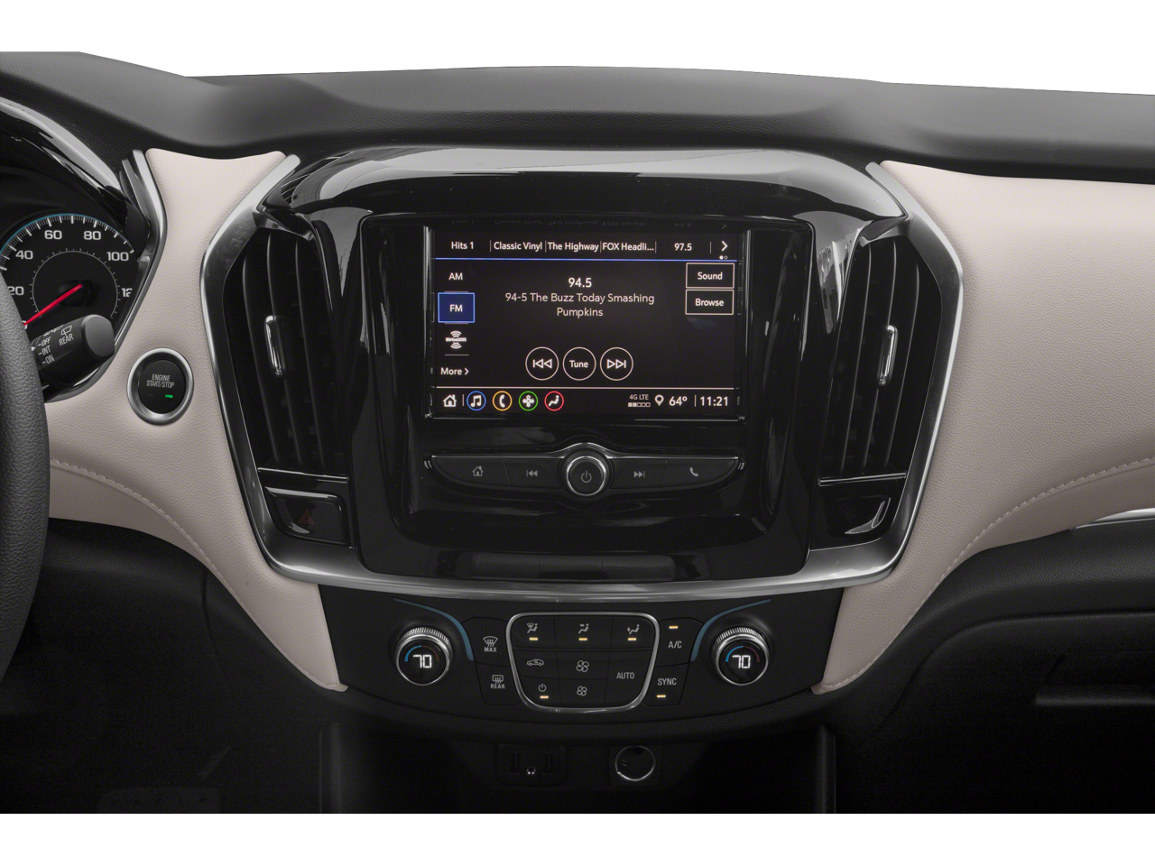 - Audio system, Chevrolet Infotainment 3 system 7" diagonal color touchscreen, AM/FM stereo. Additional features for compatible phones include: Bluetooth audio streaming for 2 active devices, voice command pass-through to phone, Apple CarPlay and Android Auto capable (FWD only.)