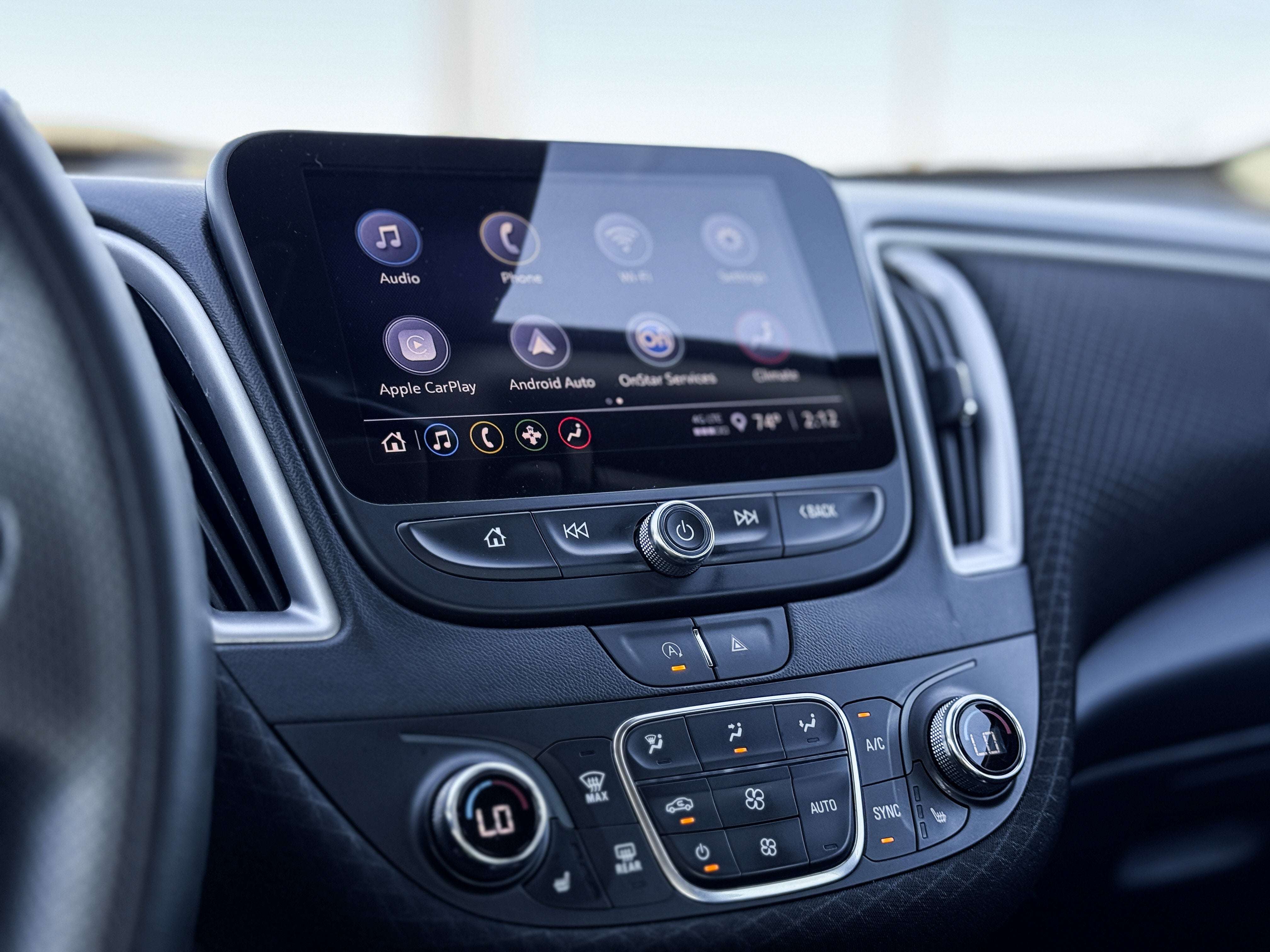 - Audio system, Chevrolet Infotainment 3 system, 8" diagonal color touchscreen, AM/FM stereo. Additional features for compatible phones include: Bluetooth® audio streaming for 2 active devices, voice command pass-through to phone, Apple CarPlay and Android Auto capable.