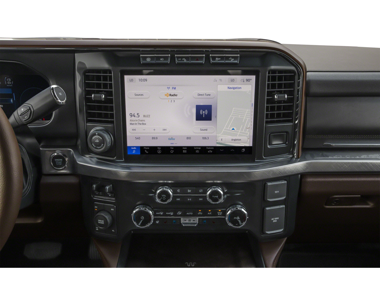 - SYNC 4 w/Enhanced Voice Recognition -inc: 12" LCD capacitive touchscreen w/swipe capability, information on demand panel, wireless phone connection, cloud connected, AppLink w/app catalog, 911 Assist, Apple CarPlay and Android Auto compatibility, digital owner's manual, conversational voice command recognition and connected navigation w/complimentary 1-year trial for eligible vehicles that begins on the new vehicle warranty start date, Customers must unlock the navigation service trial by activating the eligible vehicle w/a FordPass member account, If not subscribed by the end of the complimentary period, the connected navigation service will revert to a moving-map and active routing will no longer be available, Connected service and features depend on compatible AT&T network availability, Evolving technology/cellular networks/vehicle capability may limit functionality and prevent operation of connected features, FordPass app, compatible w/select smartphone platforms, is available via a download, Message and data rates may apply